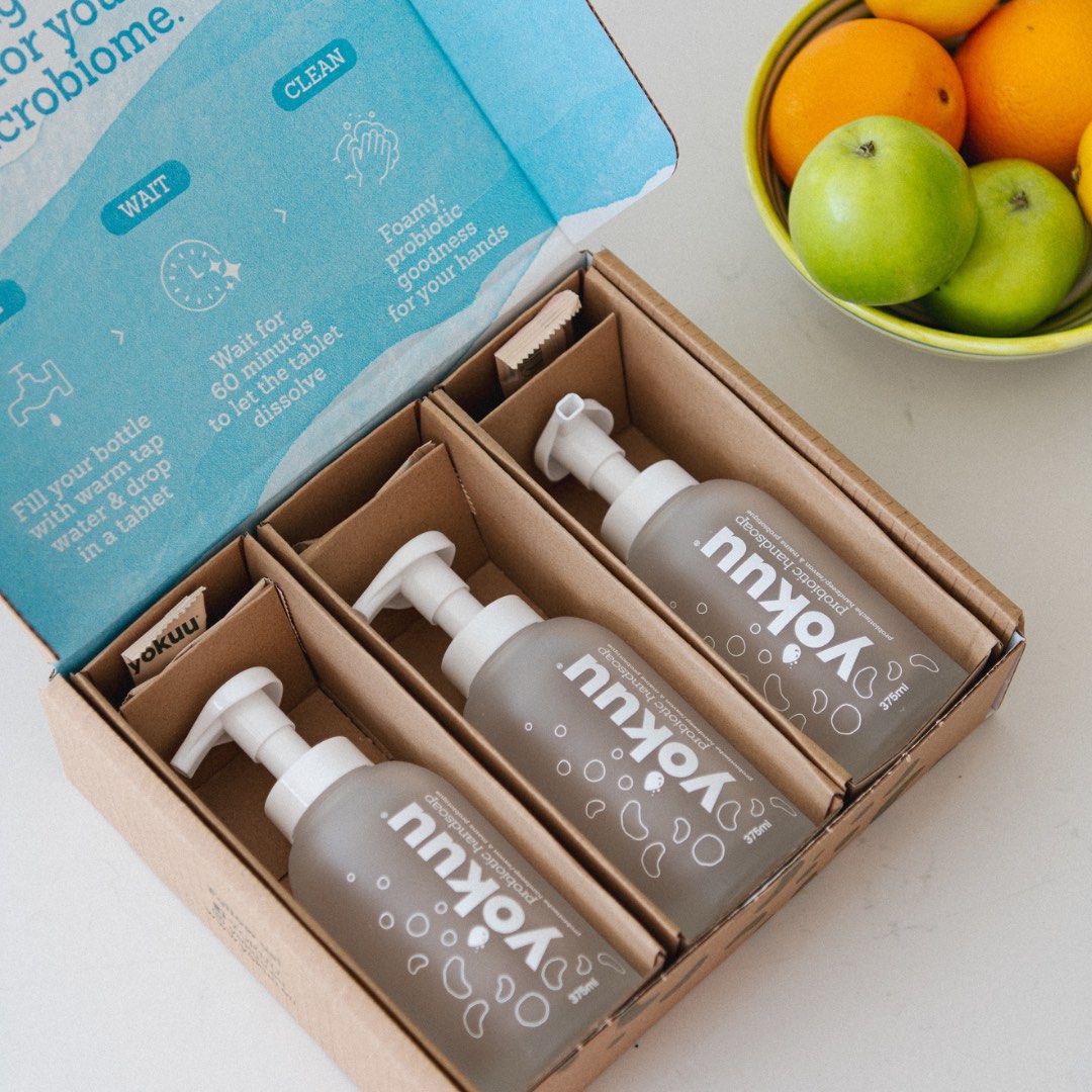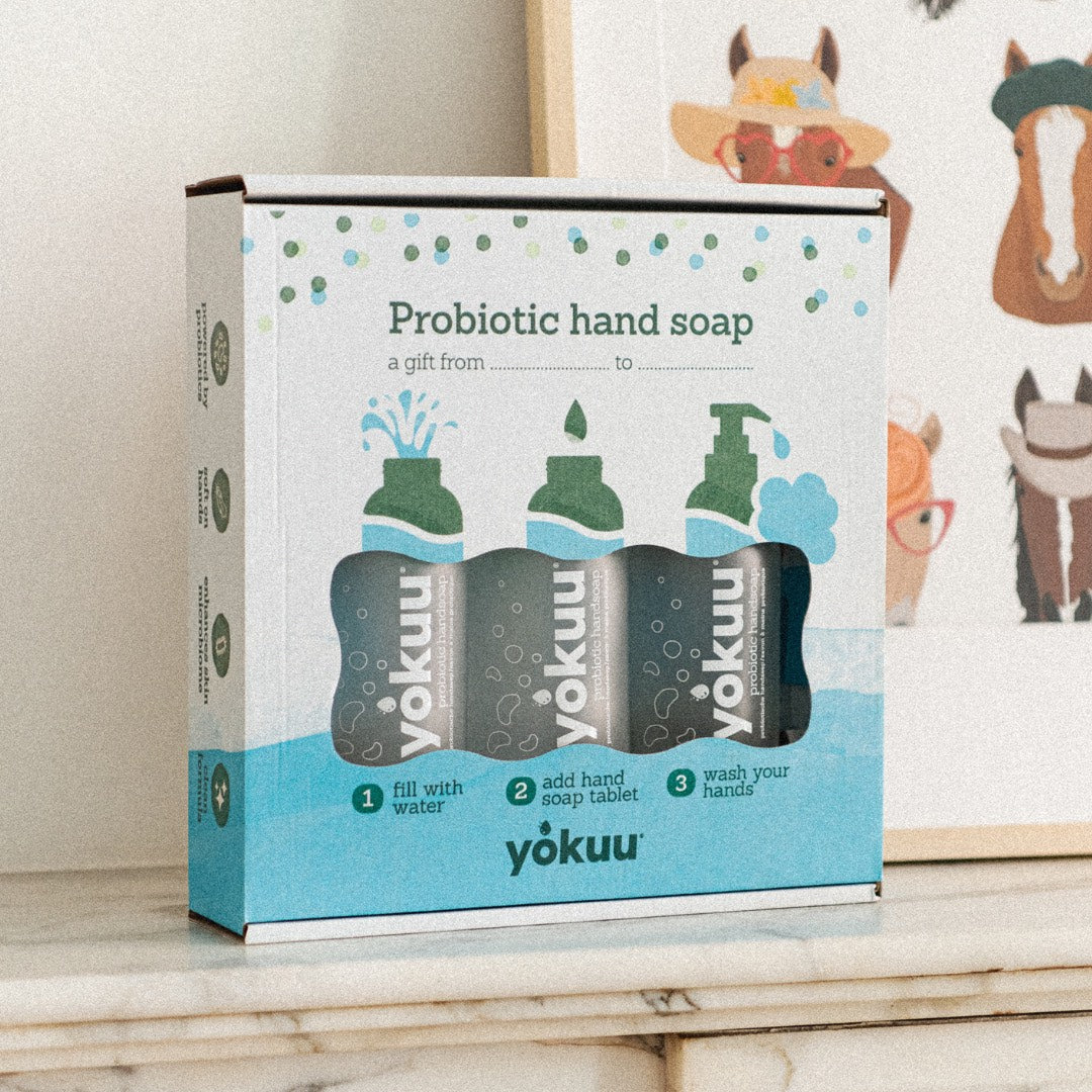 Our gift box contains a set of reusable glass bottles and refill tablets, all beautifully packaged in a customizable box designed for an unforgettable unboxing experience.