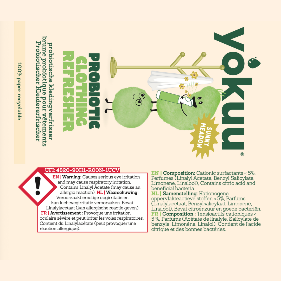 Did you know 69% of clothes are washed just to remove odours? Our probiotic clothing refresher lets you skip the laundry when your clothes aren’t dirty - just not fresh enough. A few spritzes tackle smells, smooth out light wrinkles, and refresh your fabrics, saving water, energy, and effort. Nice and lazy.