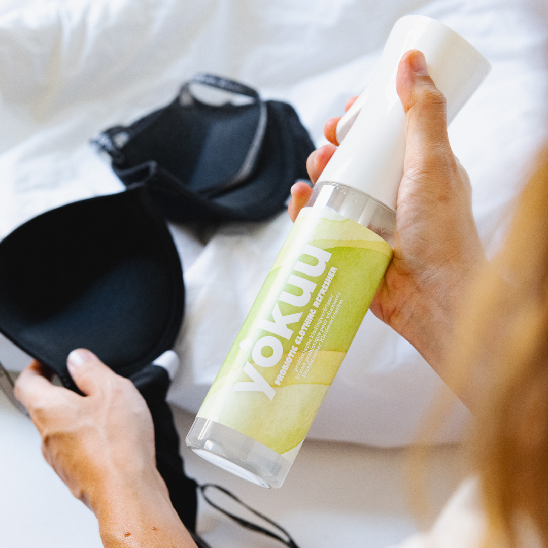 Our Clothing Refresher really removes them. The probiotics break down odour molecules on your clothes - leaving them truly fresh, without just masking smells.