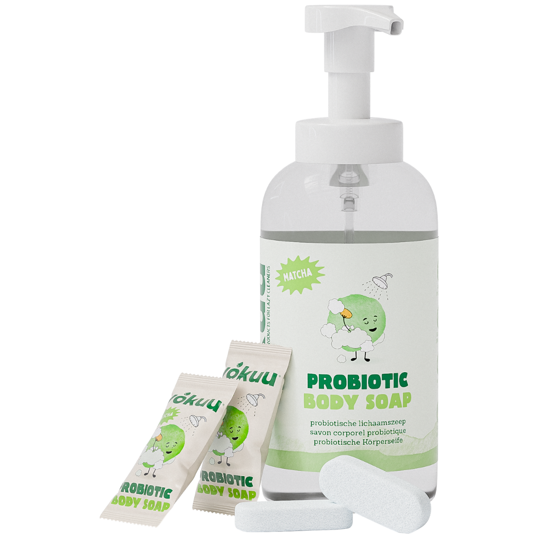 1 x Body Soap BottleLather up with 1 billion dermal defenders. Our probiotic body soap refreshes without stripping. With 2 refill pearls. Scent: Matcha.